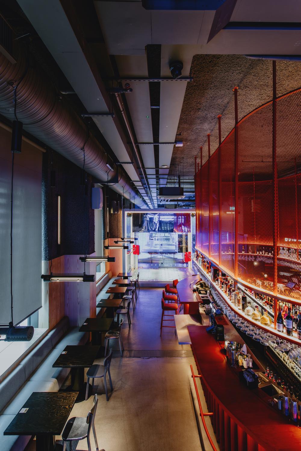 במקביל לאלמנט העיצובי, במשרד האדריכלים דאגו לאקוסטיקה מעולה ולתאורה חכמה. "בכל התקרות השתמשנו בחומר אקוסטי וגם העץ מספק אקוסטיקה טובה. תרבות הבילוי של האנגלים היא רועשת מאוד, ועדיין אנחנו מטפלים בתקרות ובקירות מבחינה אקוסטית, כדי שלמבקרים יהיה הכי נעים שאפשר.