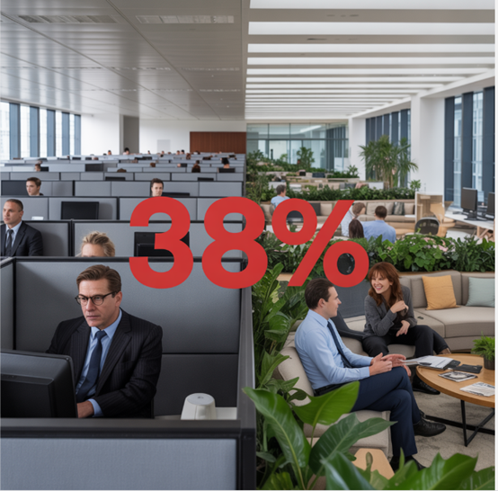 עם זאת, רק 21% מהעובדים במרחבים מחודשים הרגישו שהם מעורבים באופן משמעותי בתהליך התכנון, בעוד 29% הרגישו מעורבות מועטה או ללא מעורבות כלל.